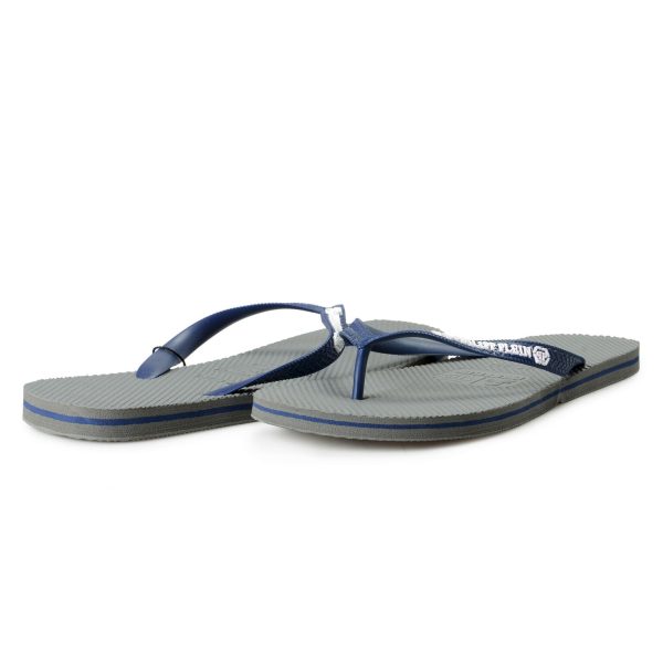 Philipp Plein men’s flip flops in polyester with grey rubber sole and blue upper